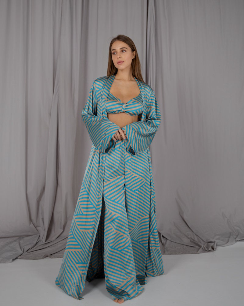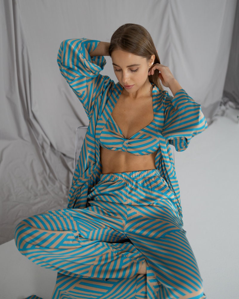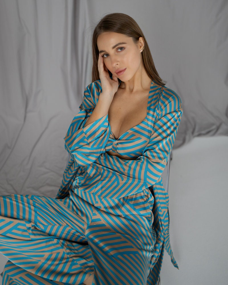 Be the first to review “Silk Pajama Set: Striped Lounge Set With Robe” Cancel reply